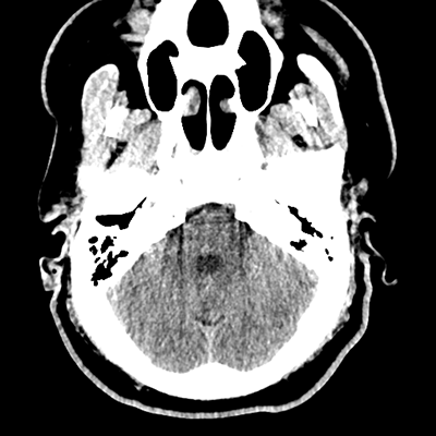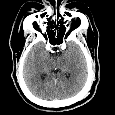 You just finished seeing another consult in the ED, so you are able to quickly head over to the resuscitation bay to see the patient. His initial vital signs are BP 124/72, HR 85, SpO2 97%, T37C, weight 80kg. Your initial exam is limited, though informative as he's able to answer a few questions en route to the CT scanner.