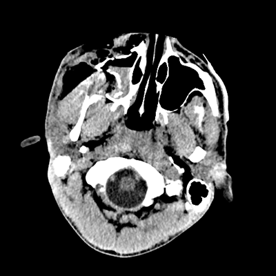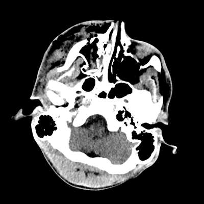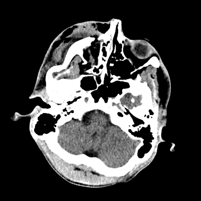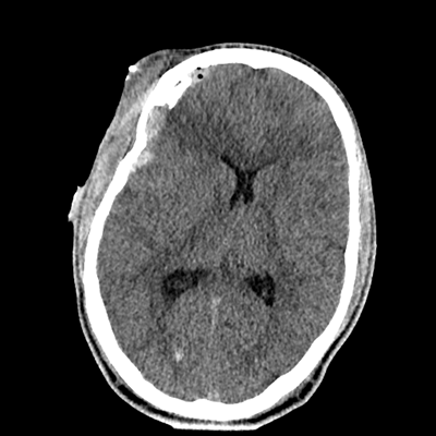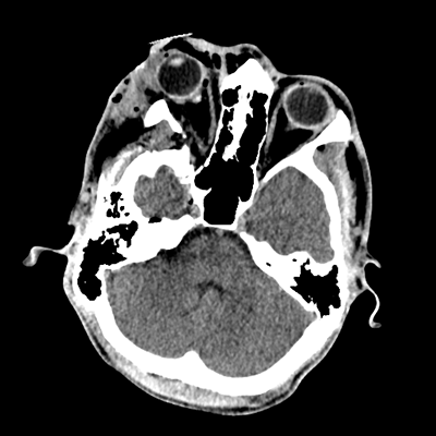 Initial vitals are notable for BP 111/67, HR 119, SpO2 100%, T 37.8C. She undergoes a whole-body CT scan. Trauma surgery also evaluates her. She has a zygomaticomaxillary complex fracture, comminuted fracture of her humerus, and fractures of ribs 2-6. Her non-contrast head CT is shown below. Plastic surgery evaluates her and recommends non-emergent operative repair of her facial fracture.